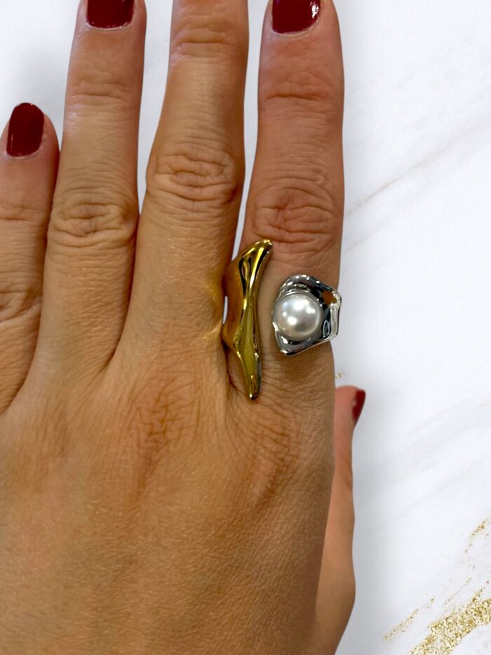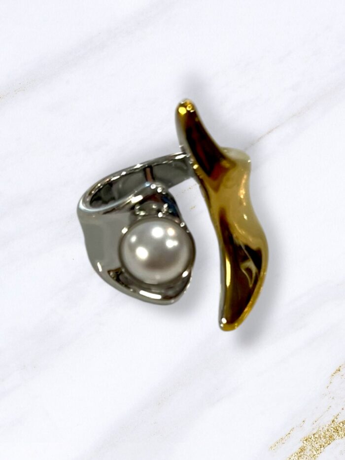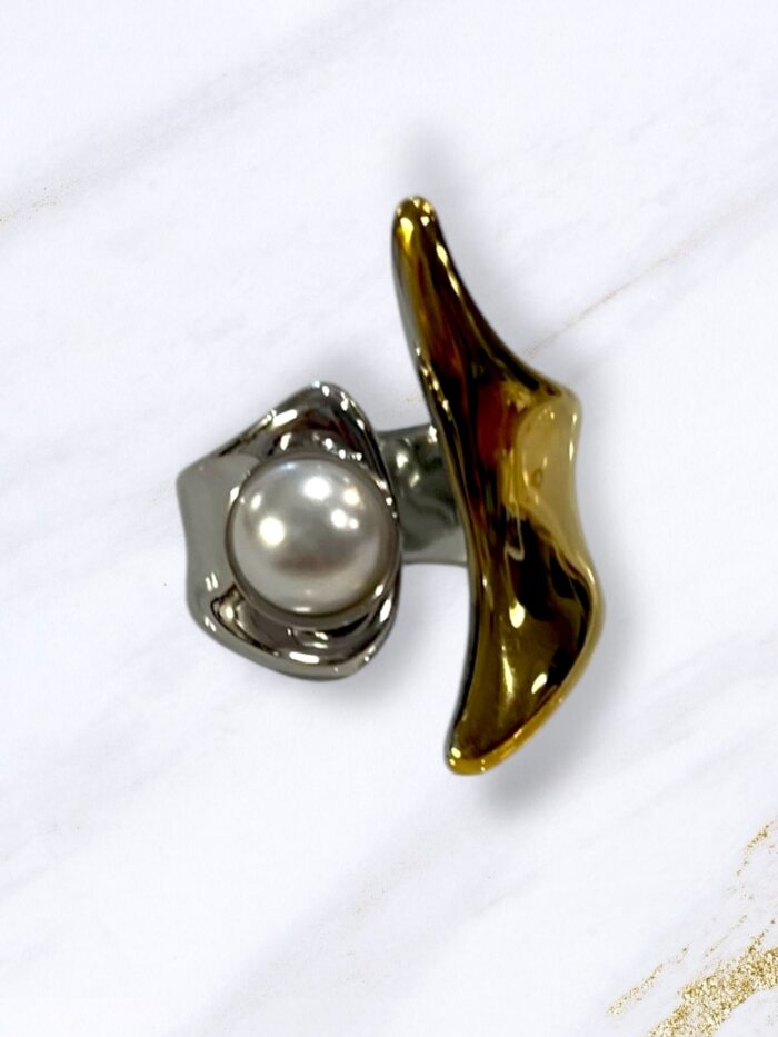 Δαχτυλίδι καρδιά ατσάλι δίχρωμο με πέρλα