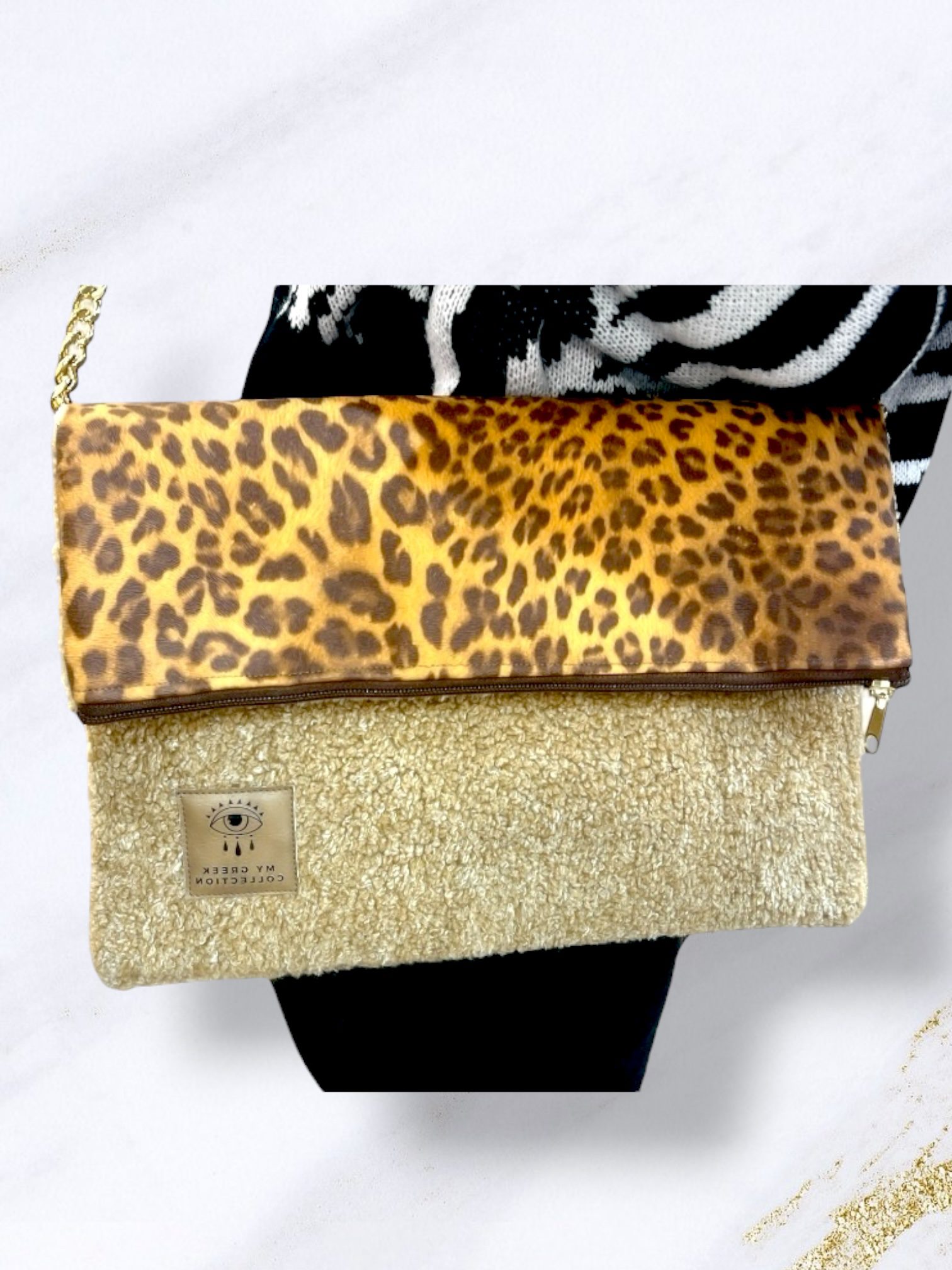 Handmade fold over μεγάλη animal print με γούνα
