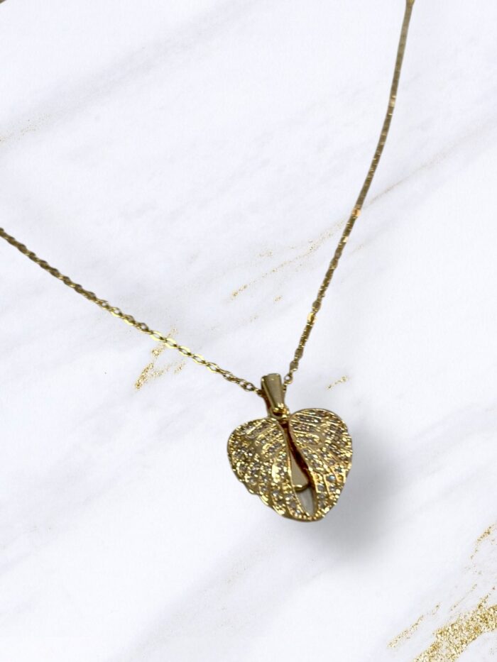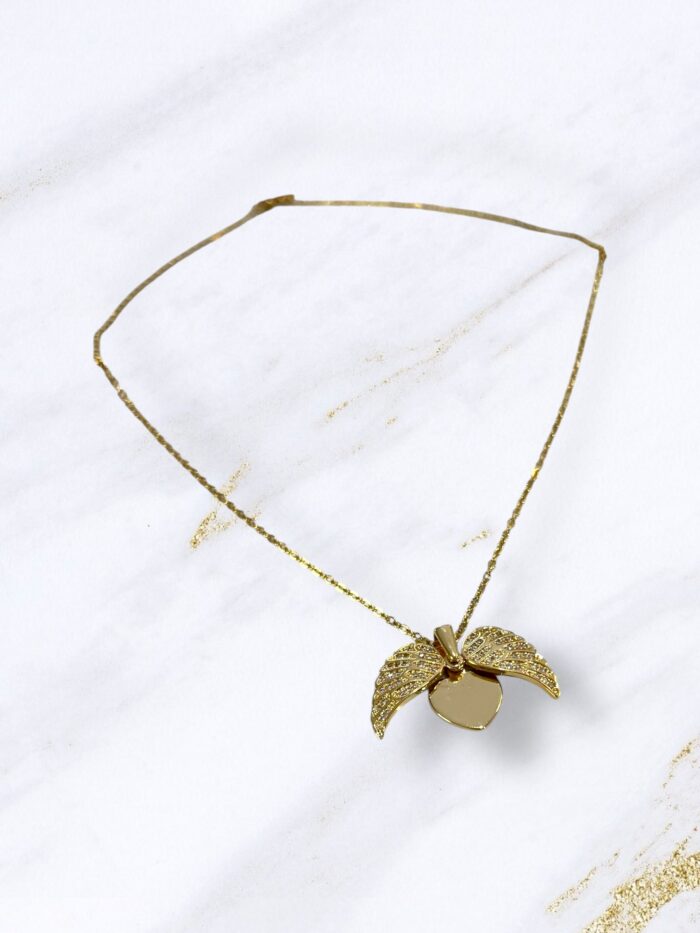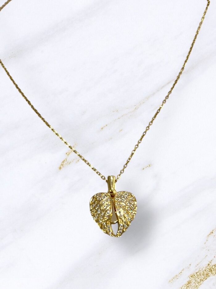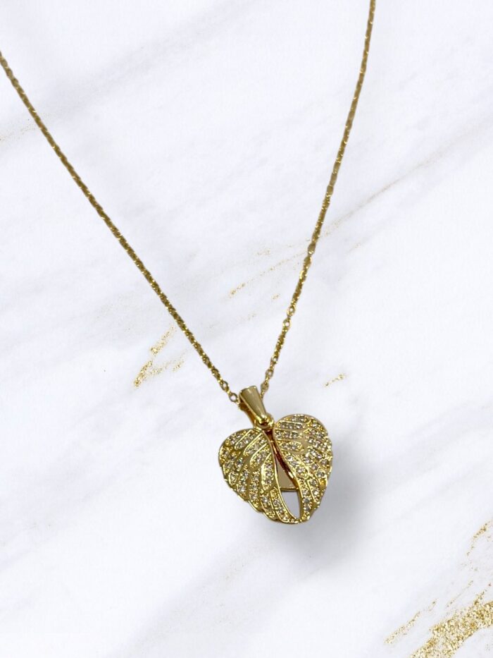Κολιέ ατσάλι χρυσή καρδούλα με φτερά που ανοίγουν