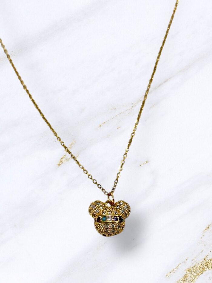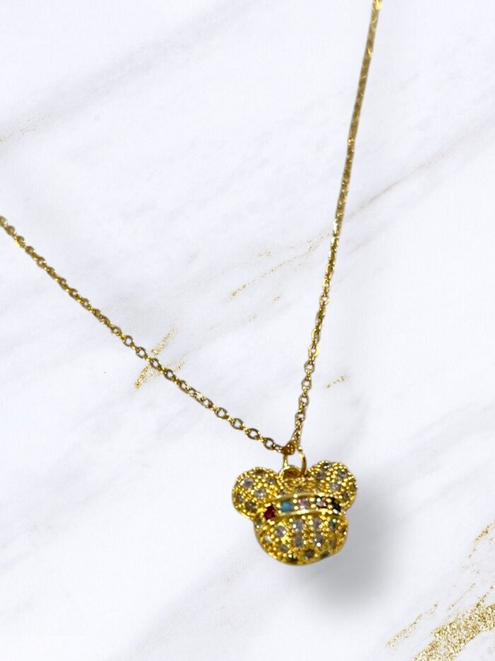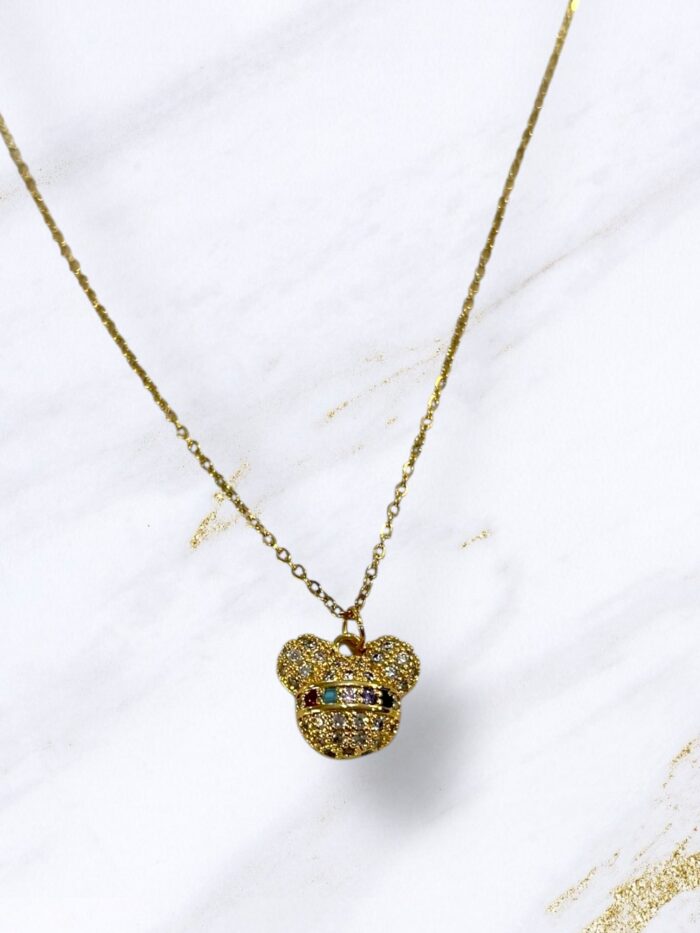Κολιέ ατσάλι χρυσό αρκουδάκι με πολύχρωμα στρας