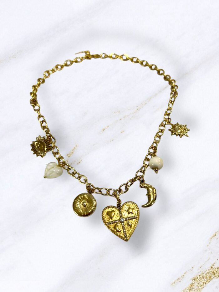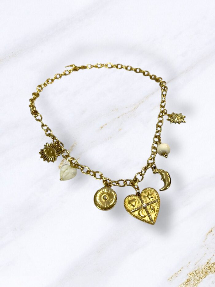 Κολιέ μαμά ατσάλι ασημί με στρας