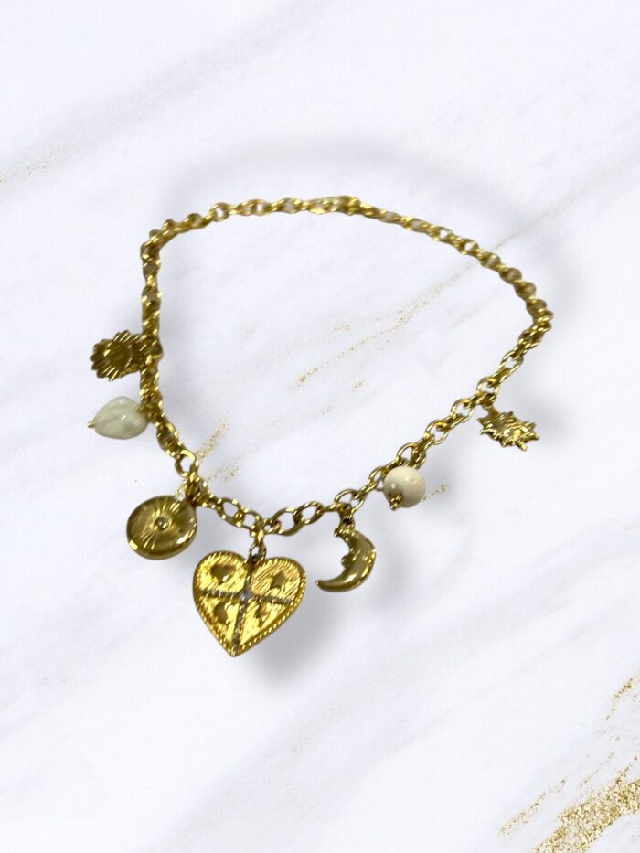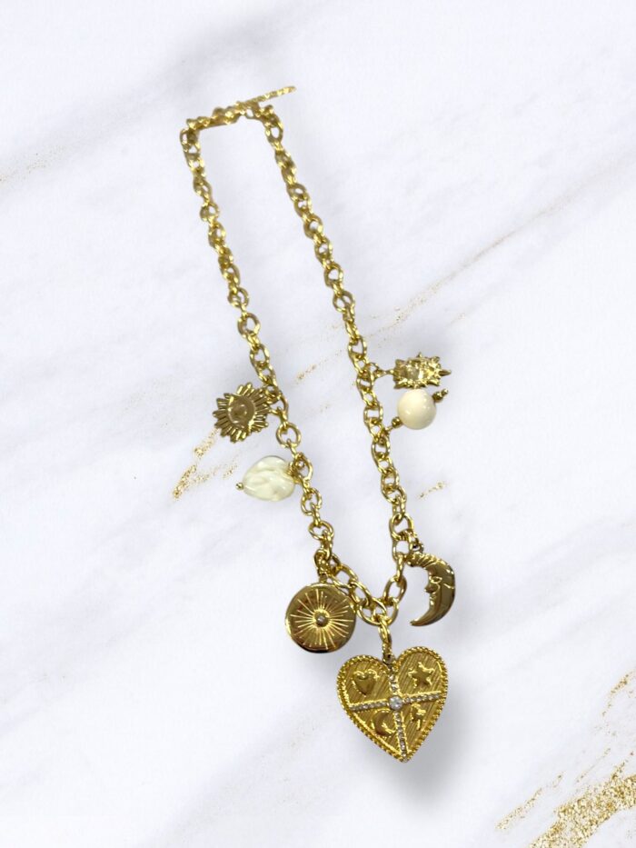 Κολιέ ατσάλι χρυσό αρκουδάκι με λιλά στρας