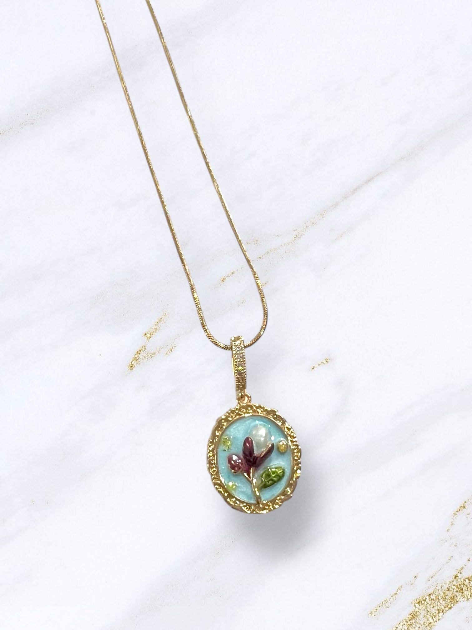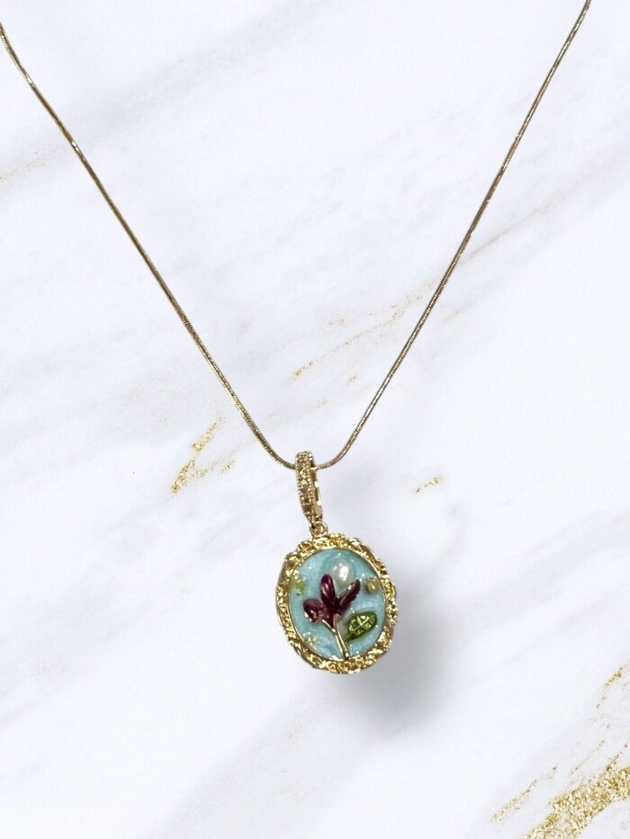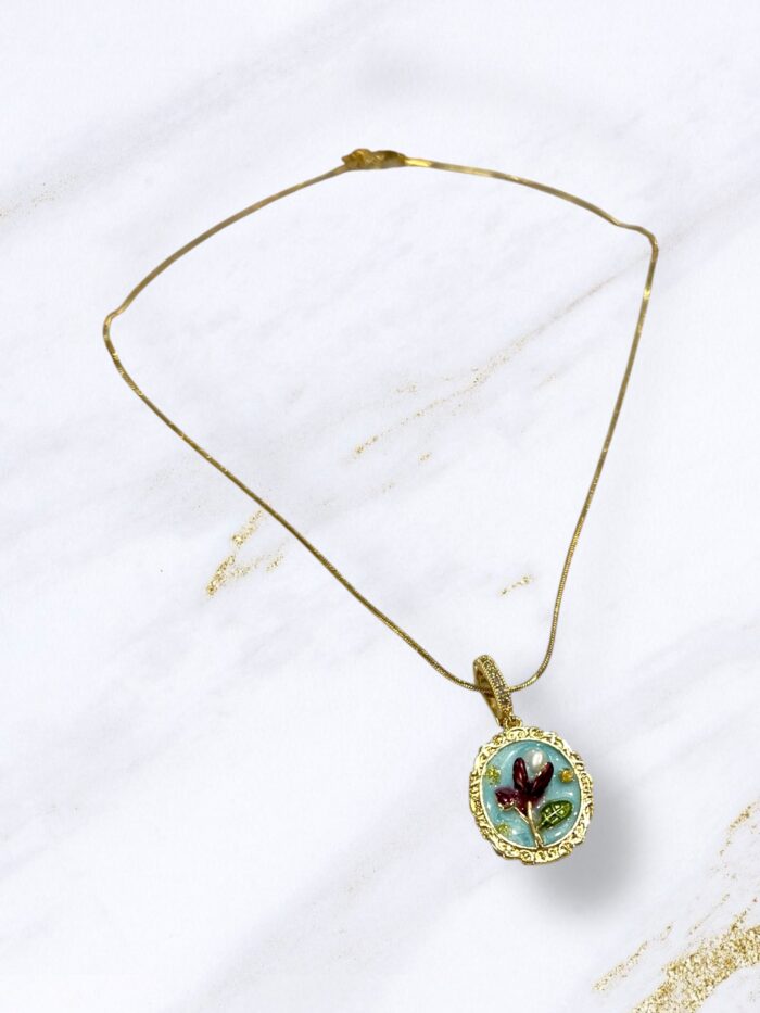 Κολιέ ατσάλι λουλούδι χρυσό με βεραμάν
