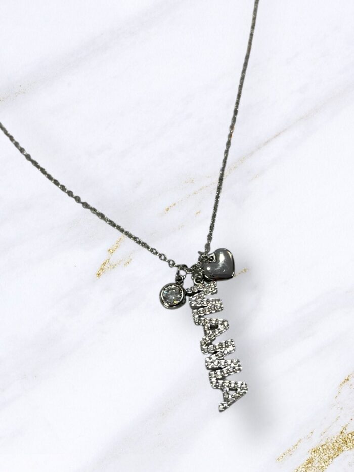 Κολιέ 2026 ατσάλι ασημί με στρας