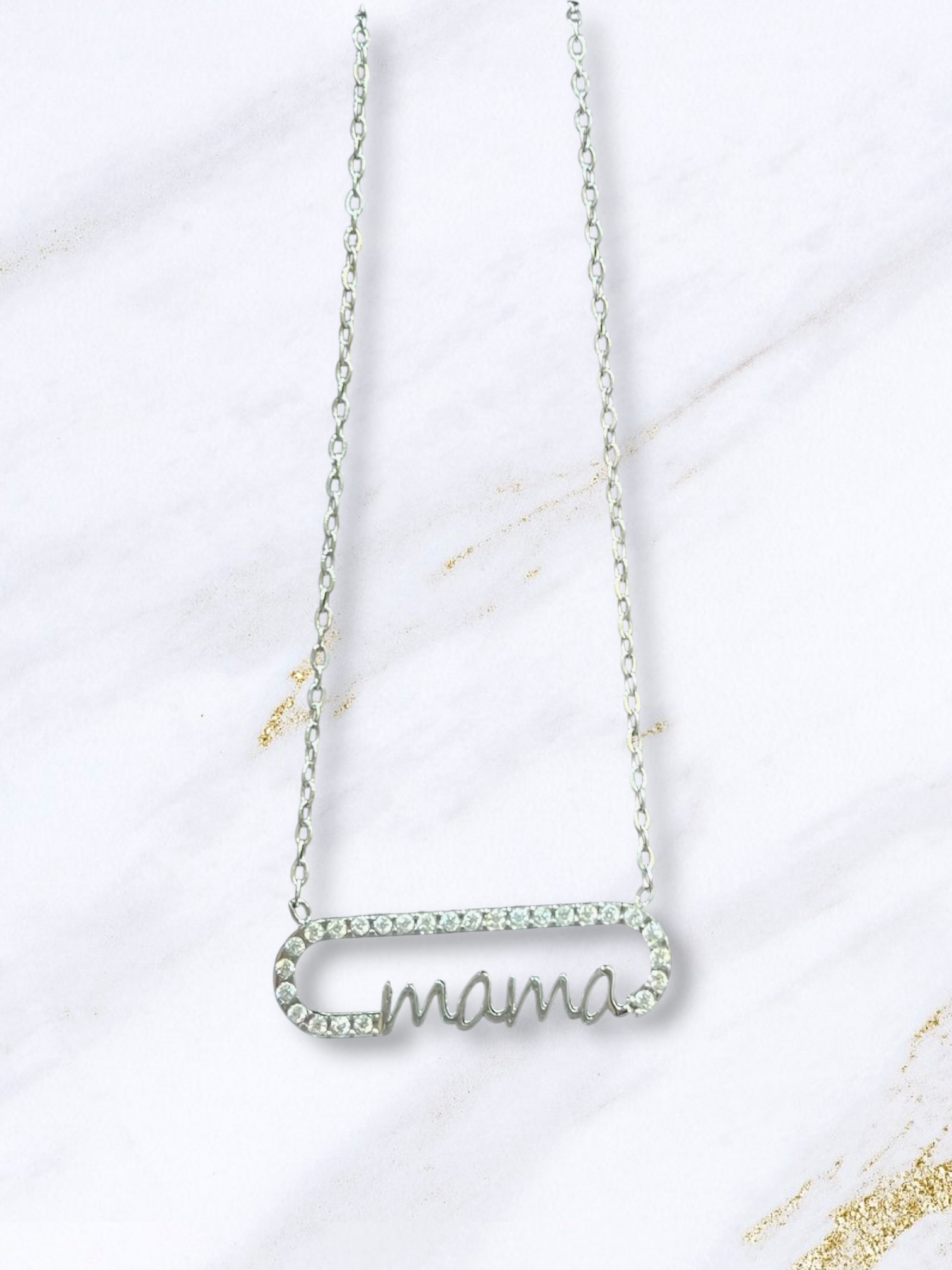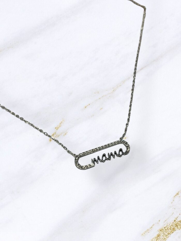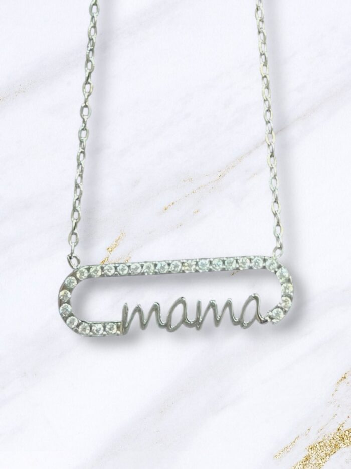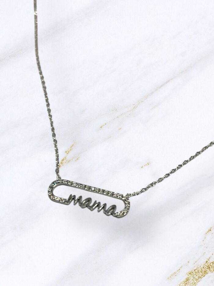 Κολιέ μαμά ατσάλι ασημί με στρας