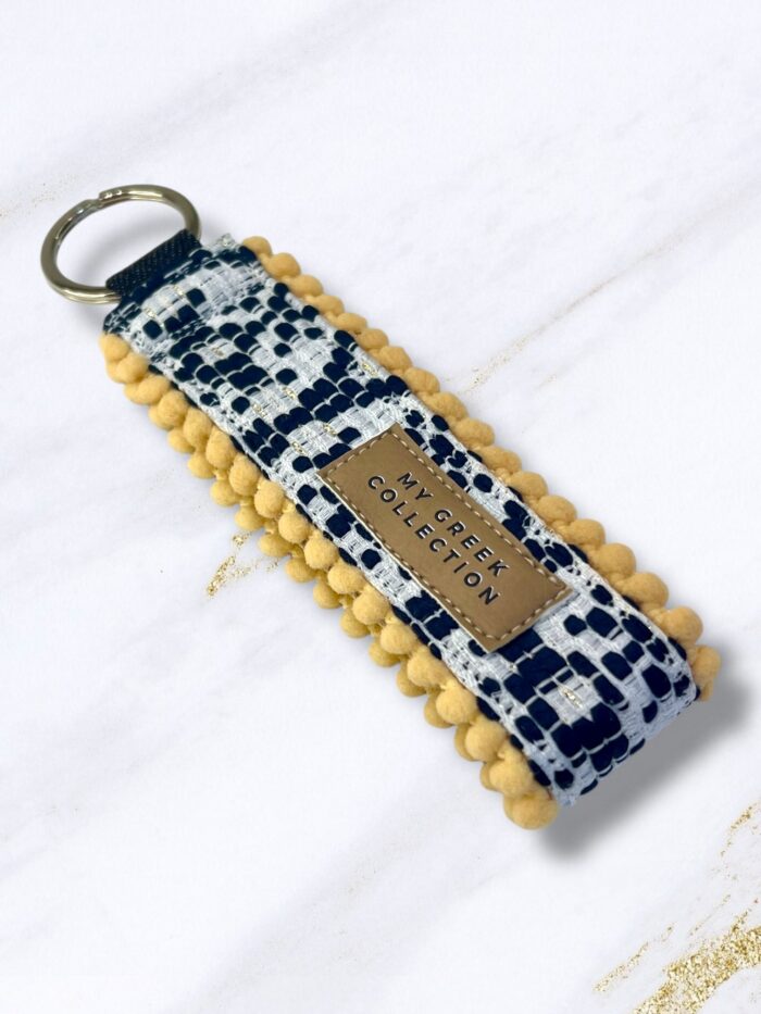 Χειροποίητο μπρελόκ καρπού υφασμάτινο. Ιδανικό μέγεθος για να μη πιάνει χώρο αφού είναι λεπτό και ταυτόχρονα το βρίσκετε εύκολα στην τσάντα και μπορείτε να το κρεμάσετε στον καρπό σας για ευκολία κινήσεων.
