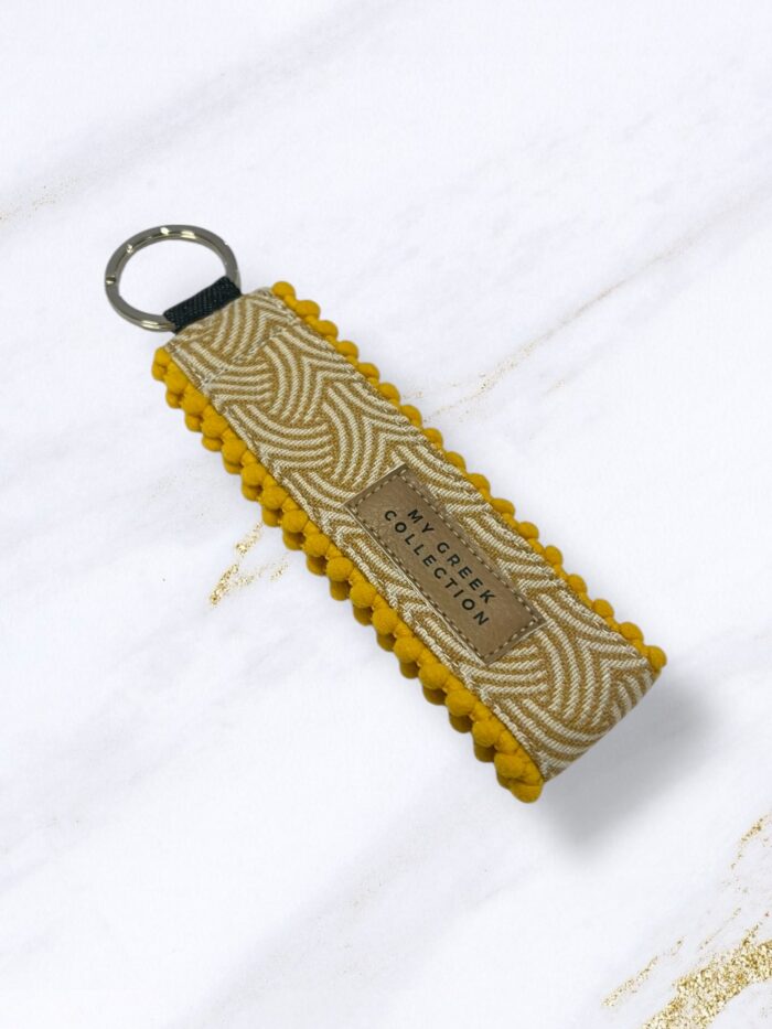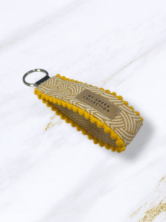 Χειροποίητο μπρελόκ καρπού υφασμάτινο. Ιδανικό μέγεθος για να μη πιάνει χώρο αφού είναι λεπτό και ταυτόχρονα το βρίσκετε εύκολα στην τσάντα και μπορείτε να το κρεμάσετε στον καρπό σας για ευκολία κινήσεων.