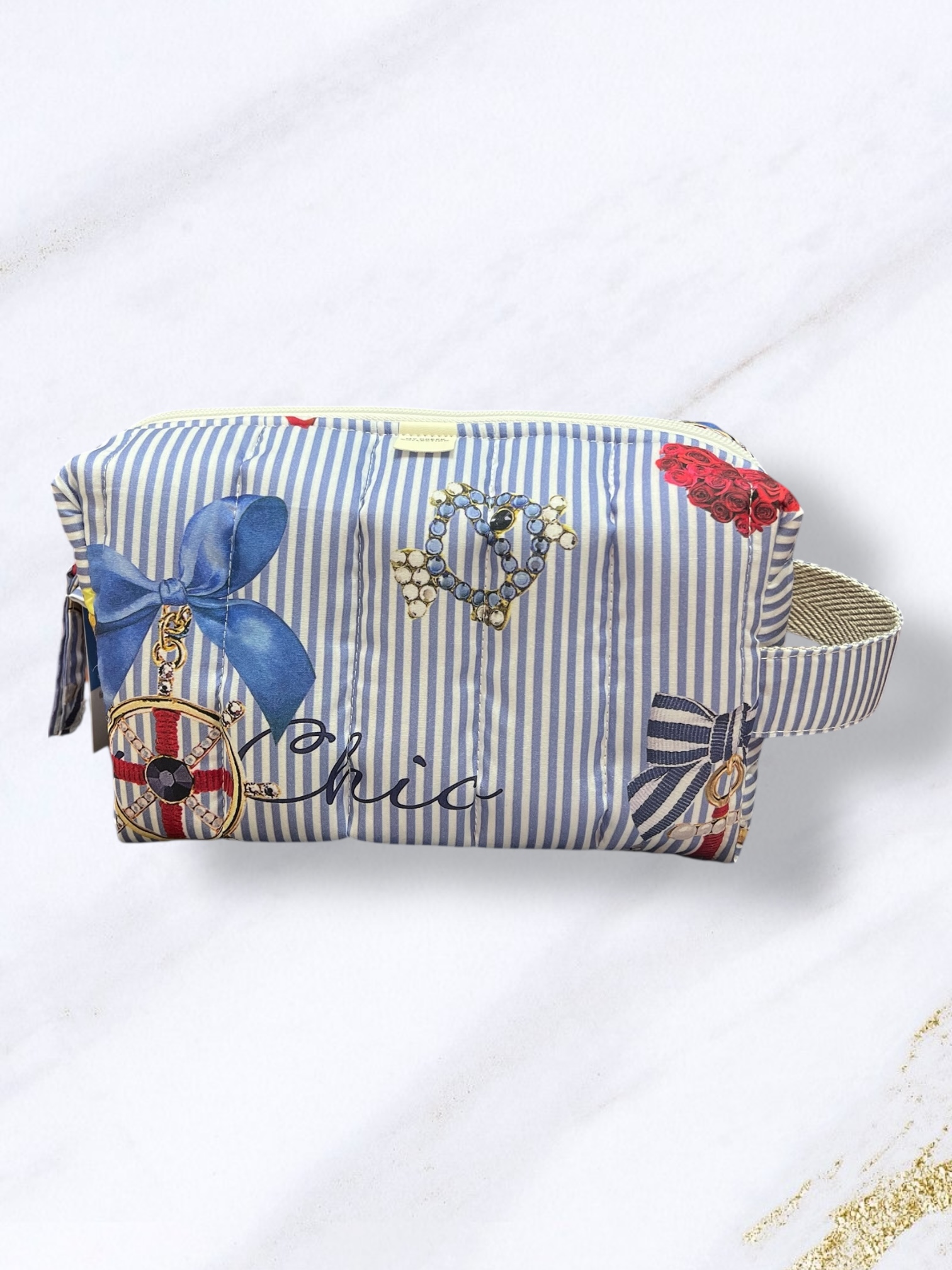 Πορτοφολάκι/νεσεσέρ υφασμάτινο οβαλ λευκό γκρι ριγέ