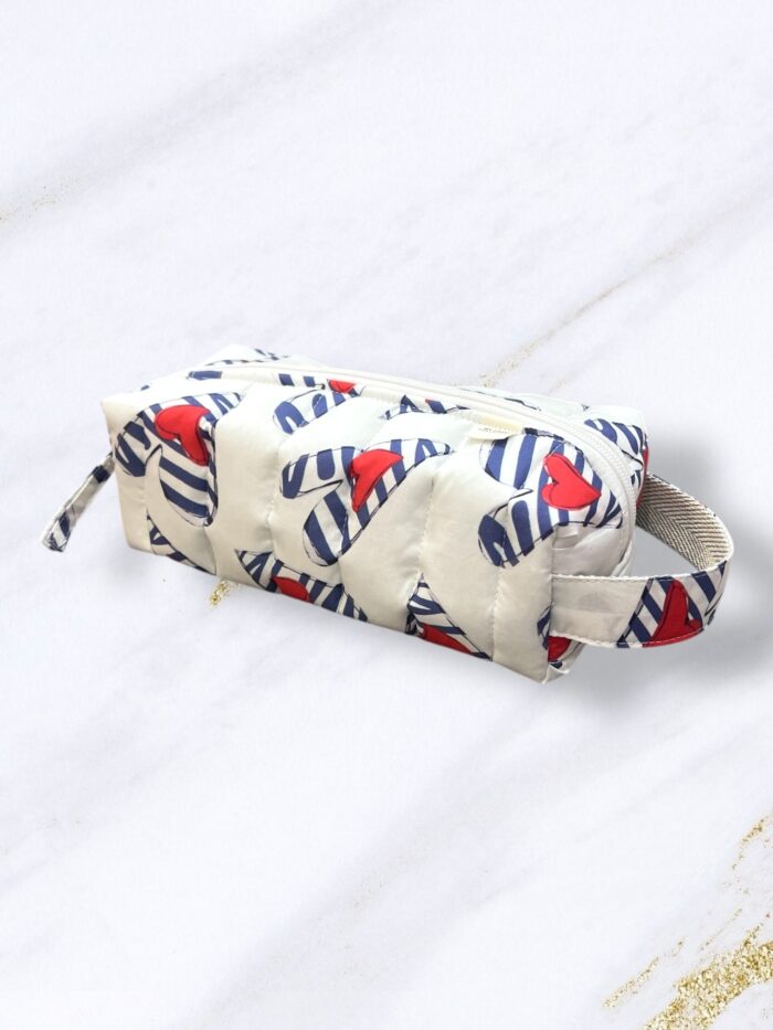 Νεσεσέρ γυναικείο καπιτονέ βαμβακερό 25εκ. λευκό με καρδιές
