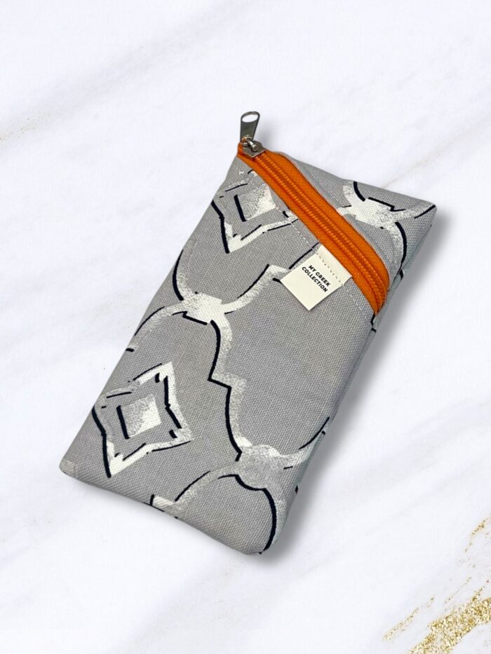 Χειροποίητη θήκη γυαλιών υφασμάτινη με καπιτονέ επένδυση εσωτερικά και φερμουάρ. Διάσταση: 9×16,5 εκ.