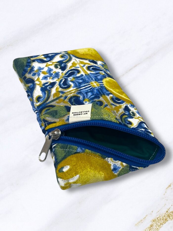 Χειροποίητη θήκη γυαλιών υφασμάτινη με καπιτονέ επένδυση εσωτερικά και φερμουάρ. Διάσταση: 9×16,5 εκ.