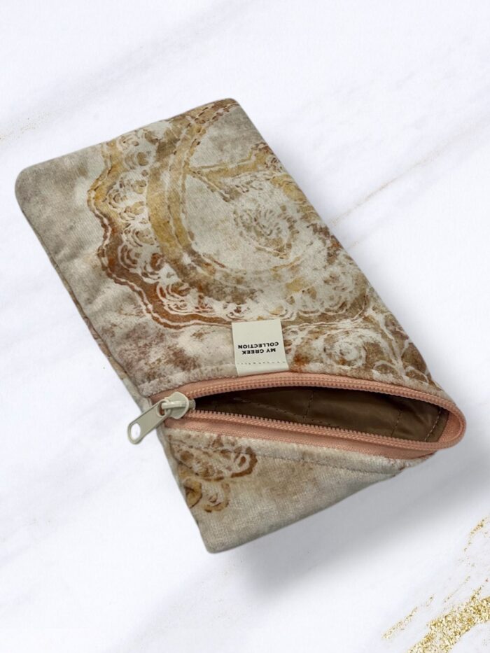 Θήκη κινητού/νεσεσέρ καπιτονέ εσωτερική επένδυση εκρού μοτίβα