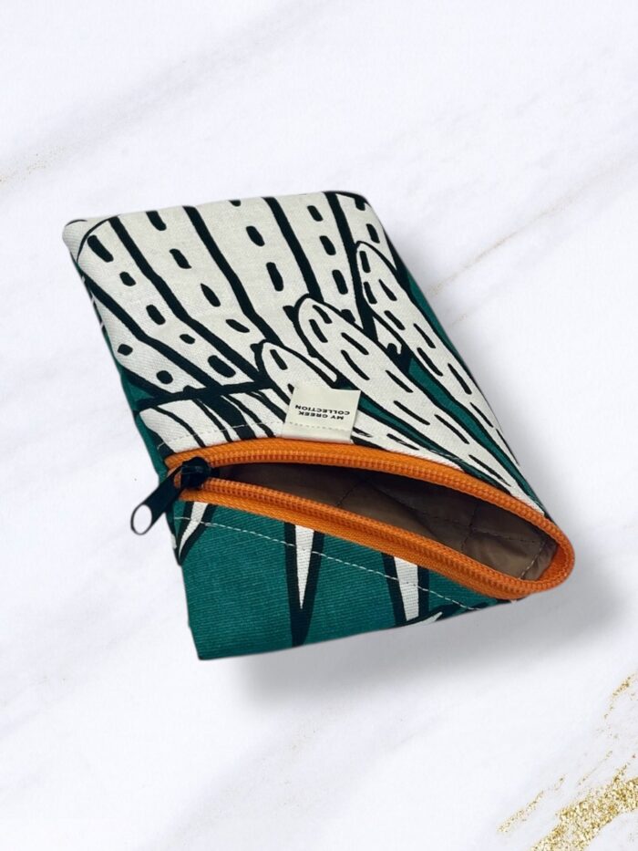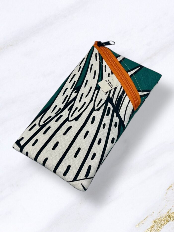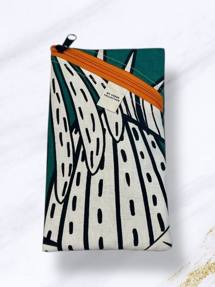 Χειροποίητη θήκη κινητού υφασμάτινη με καπιτονέ επένδυση εσωτερικά και φερμουάρ. Διάσταση: 11×19 εκ.