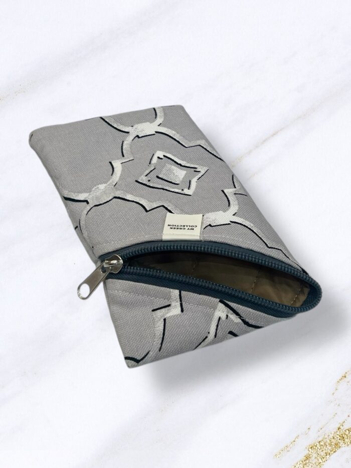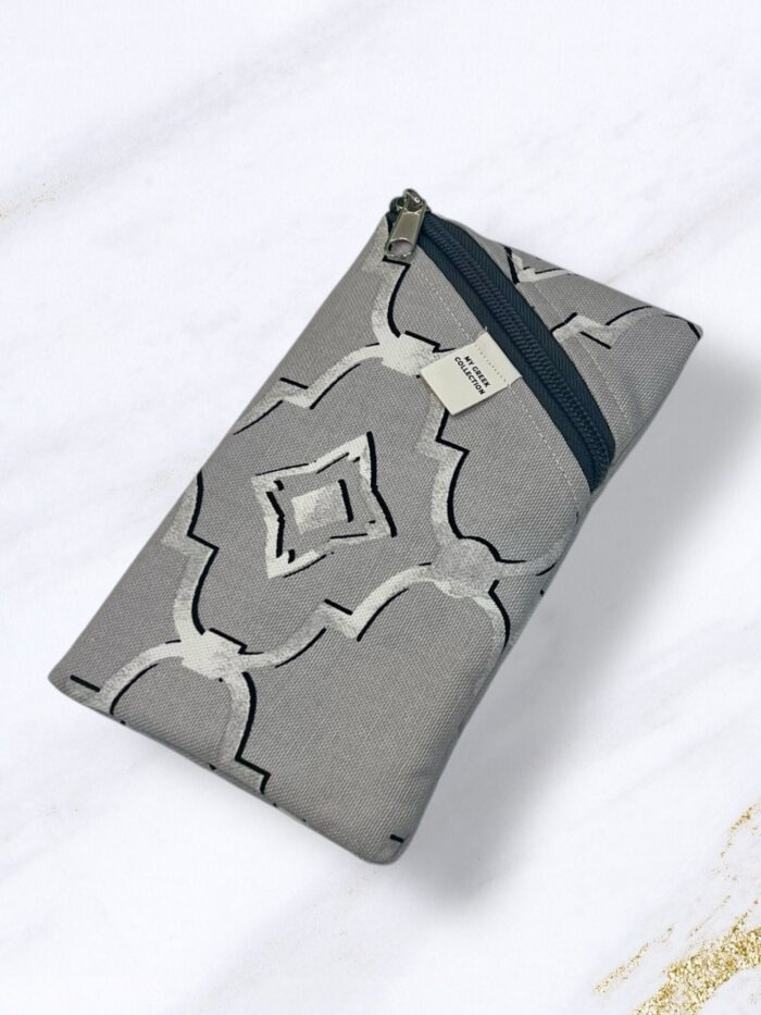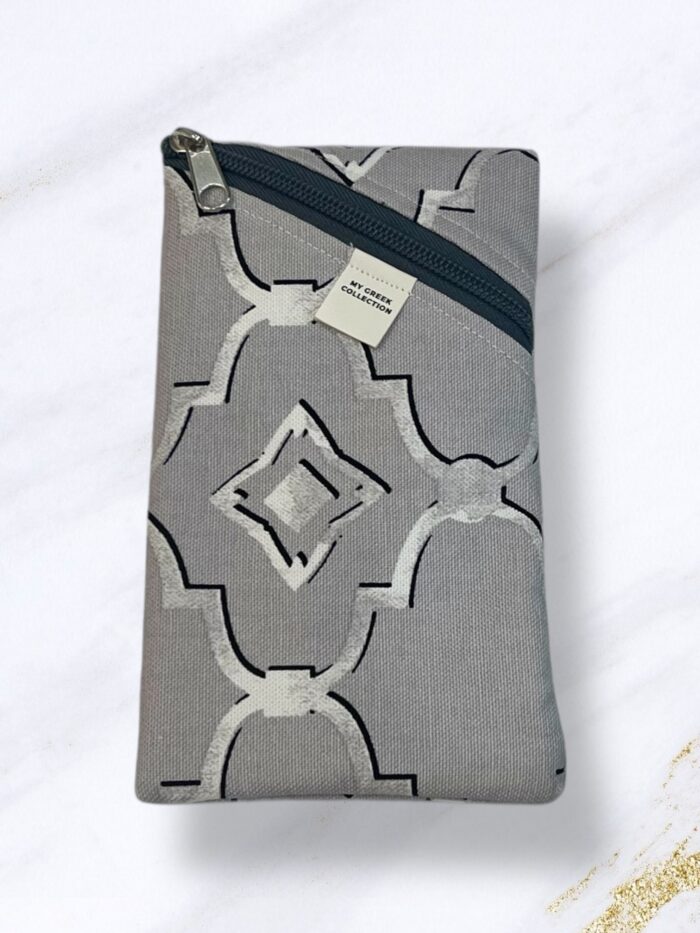 Θήκη κινητού/νεσεσέρ καπιτονέ εσωτερική επένδυση γκρι μοτίβα