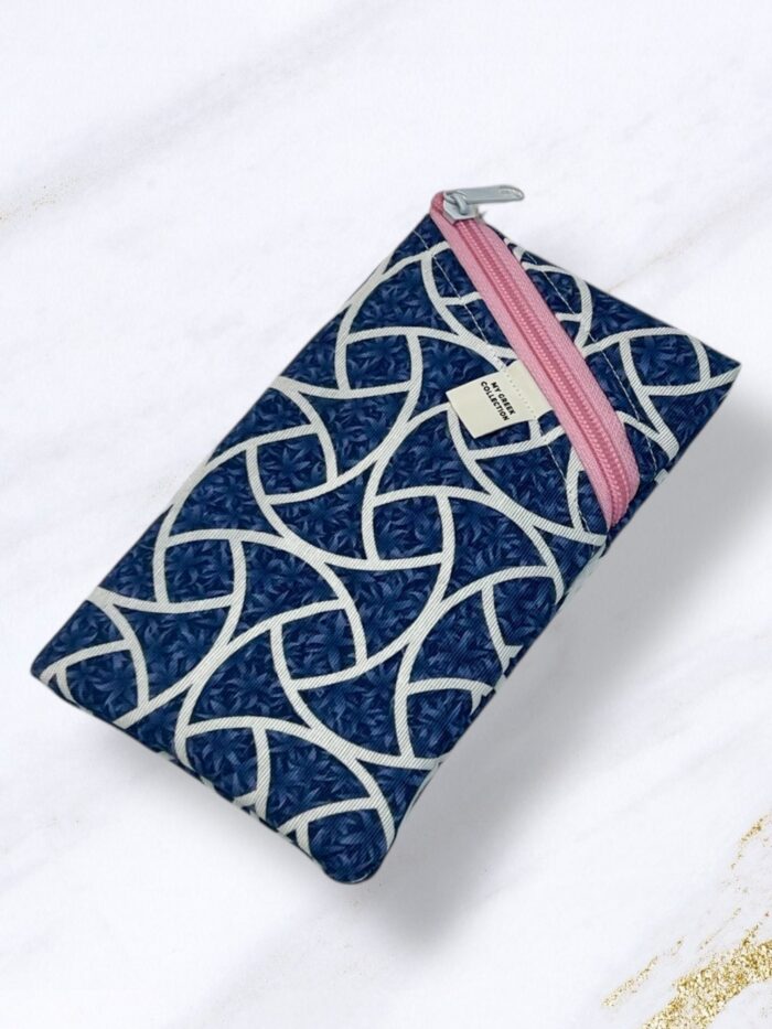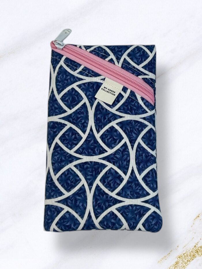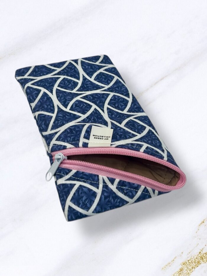 Χειροποίητη θήκη κινητού υφασμάτινη με καπιτονέ επένδυση εσωτερικά και φερμουάρ. Διάσταση: 11×19 εκ.