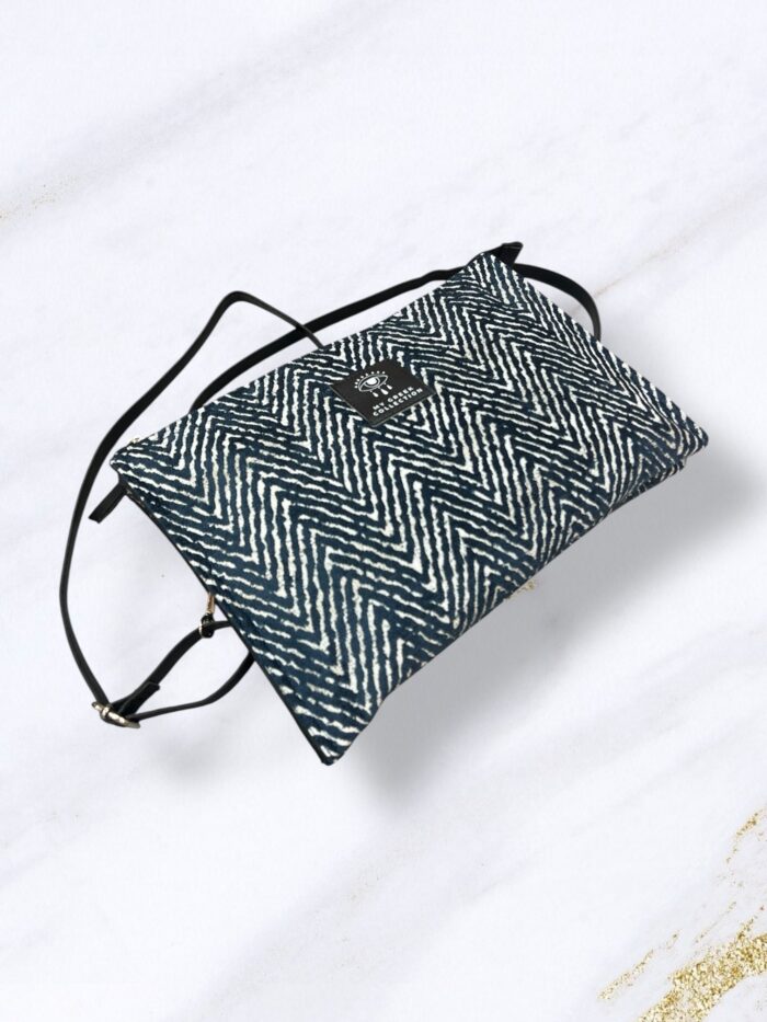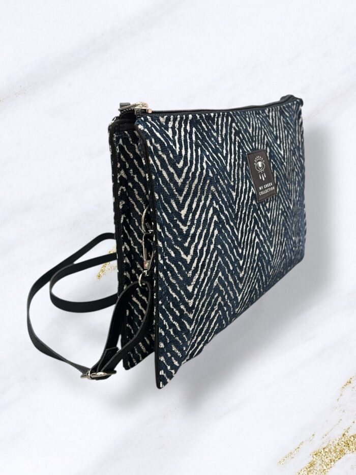 Τσάντα φάκελος διπλός μπλε ψαροκόκκαλο